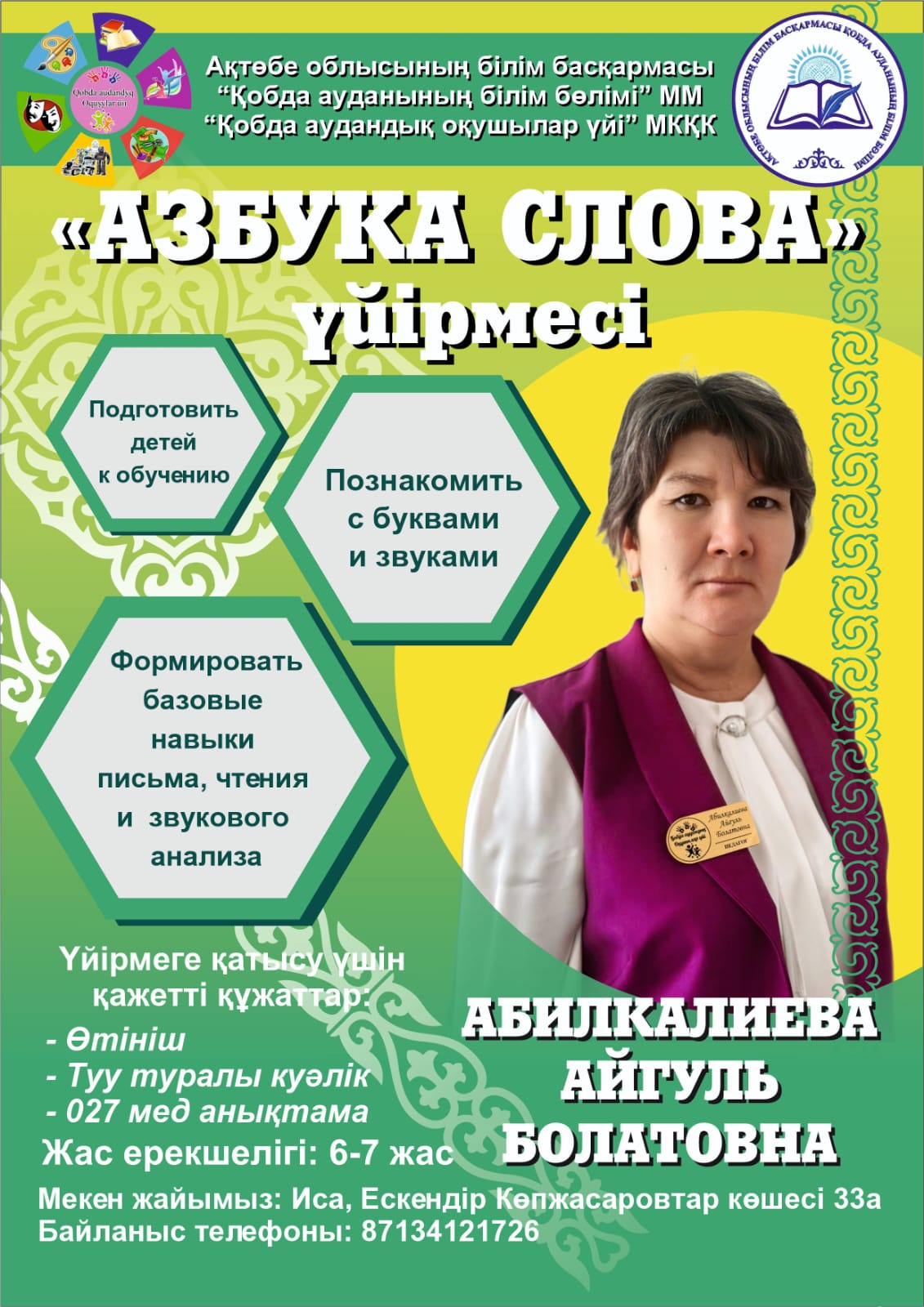 "Речевой фитнес", Словомания","Азбука слова ","Секреты русского языка " үйірмелерінің жетекшісі